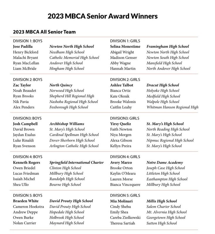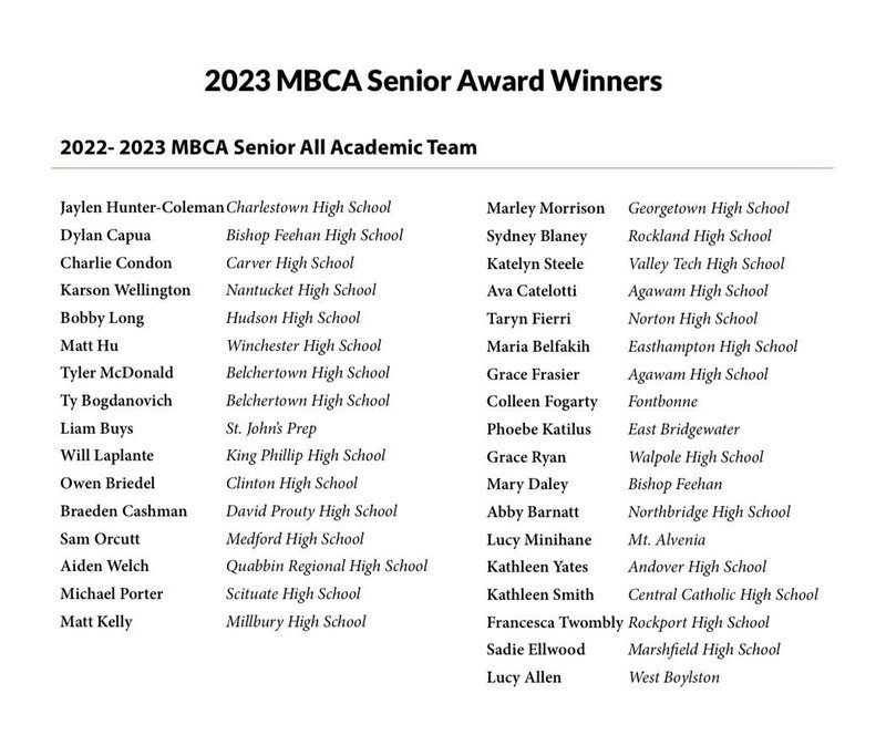 2023 MBCA Senior Award Winners Announced! On May 21st, 2023, we will recognize our outstanding senior student athletes and their families at our annual MBCA breakfast. This year, the MBCA Executive Board received over 90 nominations for their senior awards. You can find the names of all of the student-athletes that MBCA is awarding on their All-Academic and All-Senior team below...