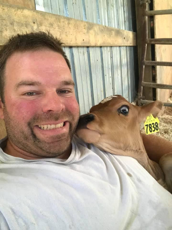 Farmer Nate is one of the three siblings that manage the day to day operation on the farm. Here is Farmer Nate with one of his favorite jersey calves.