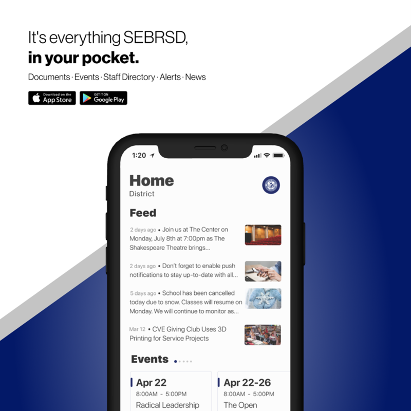 Notification Process: Our district has now transitioned over to the latest version of our App and website. Our latest App and website services are our primary means for delivering the most up-to-date information to your cell phones with our notification feature. To get the App, you can go to the Apple Store or Google Play Store and search for “SEBRSD” then download the App to your phone.