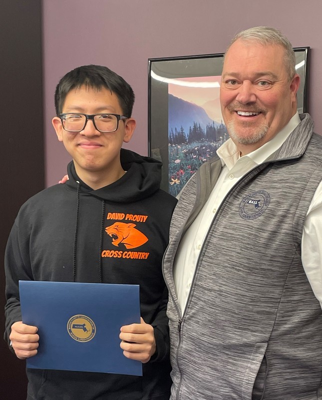 SPENCER, MA - January 30, 2023 - Recently, Superintendent Paul Haughey met to recognize the top senior, Cody Chen, with the Massachusetts Association of School Superintendents Academic Excellence Award. The state association celebrates top students during the early portion of their senior year instead of the usual spring award ceremony so that the distinguished honor is in time to be included on college applications.